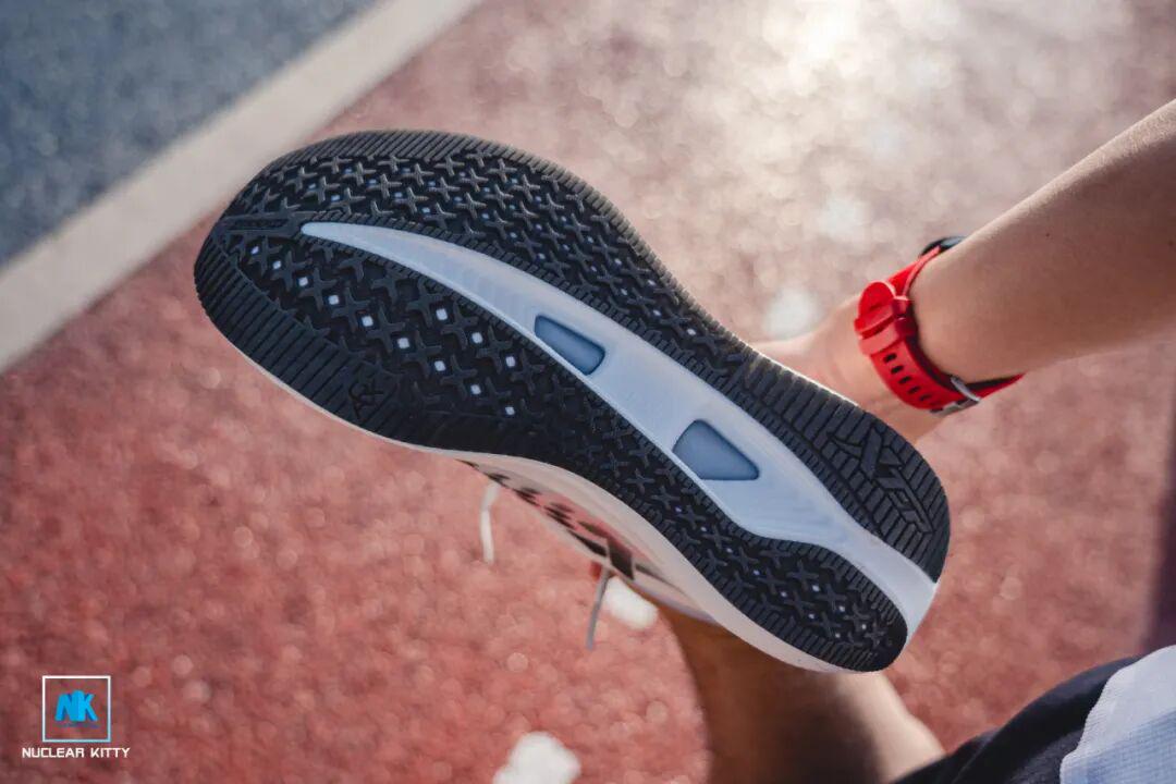 天然,耐磨性能并不单是是只靠数据来撑持的,特步从大底的磋议上也下了一番功夫,在沿用CPU 超耐磨材质的基础上,进一步在结构上作念了加法,在要道磨耗区域加厚3mm,在保证轻量化的前提下,减速使用寿命。